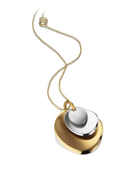 Gioiello Breil Milano, Collezione Eclipsis, Collana con pendente grande in accaio bilux con trattamento IP oro e due pendenti piccoli in acciaio bilux satinato. Catena "rolò" in acciaio con trattamento IP oro, chiusura ad incastro.