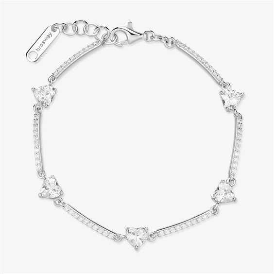 Bracciale semirigido in argento rodiato 925‰ con cubic zirconia a forma cuore.