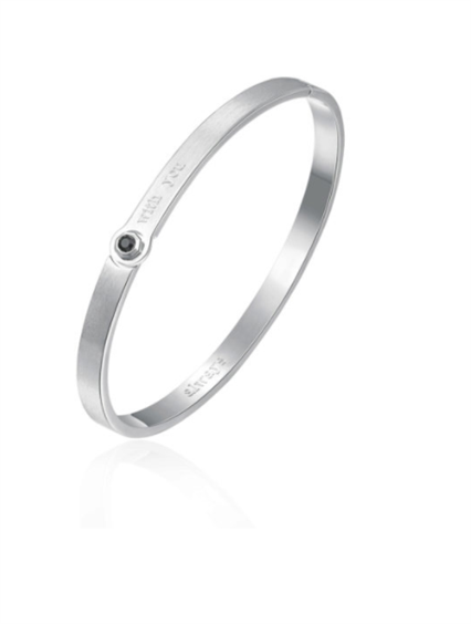 INCISIONE: With you (fronte) – Always (interno) Bracciale rigido in acciaio 316L con satinatura, incisione e cristallo nero forma tonda. semplice apertura all'altezza del cristallo e snodo opposto. diametro cm.7 altezza cm.5 (large)