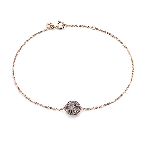 Un pavè flat di Diamanti Brown su una calda base di oro rosa. Un mix di colori che ti abbracciano e ti cullano nell'eleganza.