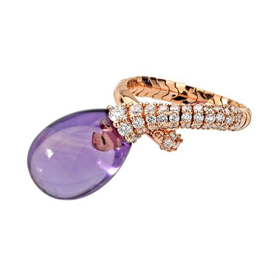 Anello in oro rosa gambo armonico con ametista e diamanti