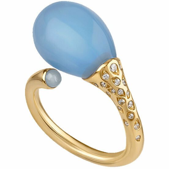 Anello Joyful in oro giallo 18kt, diamanti e poire in cristallo color glicine. Oro GR 5,00 KT Diamante CT 0,14 NR 23 Quarzo GR 2,64 NR 2
