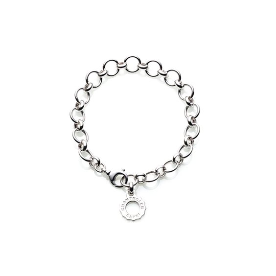 Bracciale 20 cm a maglie tonde in oro bianco con pendente logo