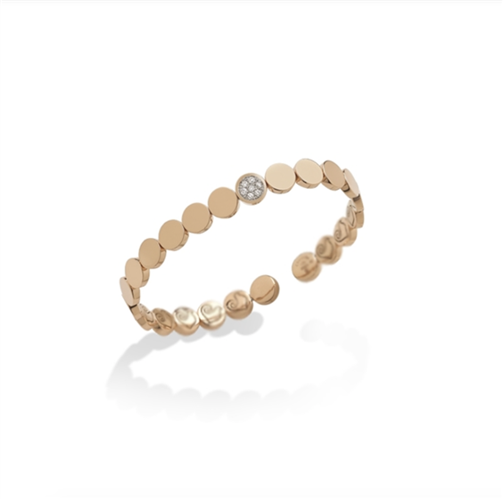 Bracciale rigido aperto in oro rosa, una paillettes in pavé di diamanti