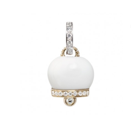 Ciondolo campanella piccola in oro bianco e giallo, kogolong e diamanti