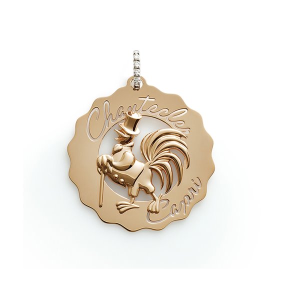 Ciondolo Logo Gallo dandy in oro rosa e biglierina in diamanti.