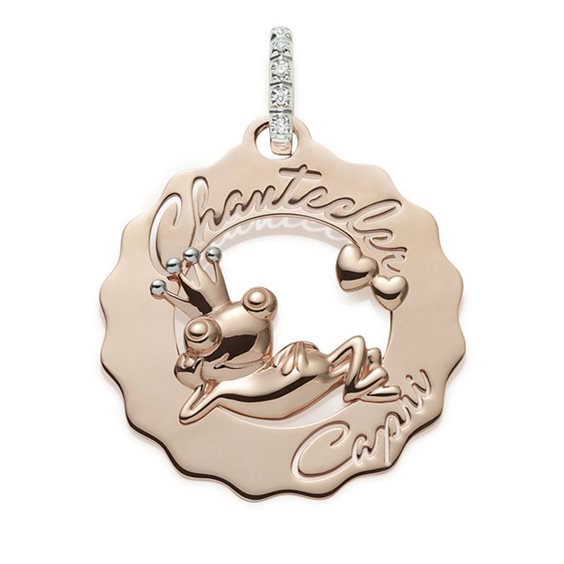 Ciondolo logo piccolo in oro rosa principe ranocchio con diamanti