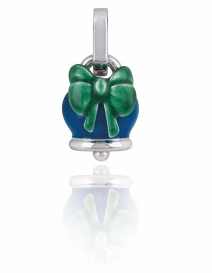 Ciondolo Campanella micro con fiocco in argento,smalto blu e verde