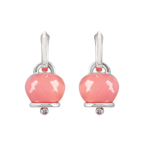 Orecchini Et Voilà Campanella piccoli in argento, resina sfaccettata a mano color quarzo rosa e due diamanti