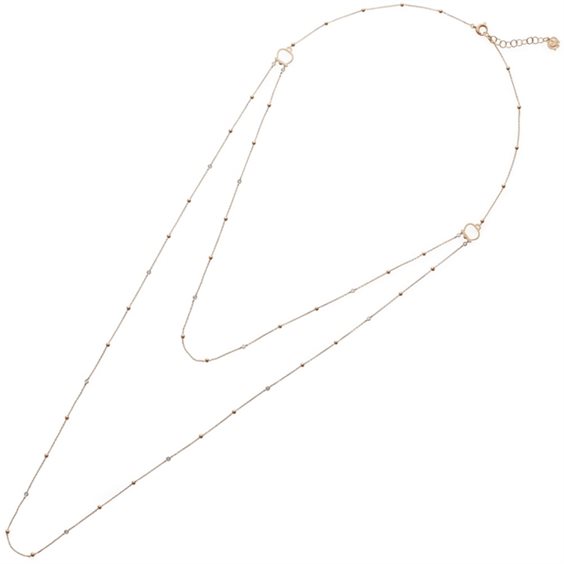 Collana a due fili in oro rosa con sfere oro e diamanti