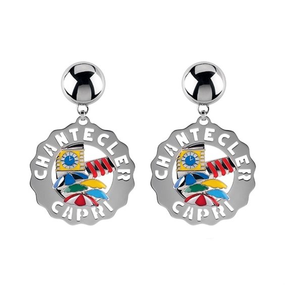 Coppia di Orecchini piccoli Logo "Capri Pop" in argento e smalti colorati