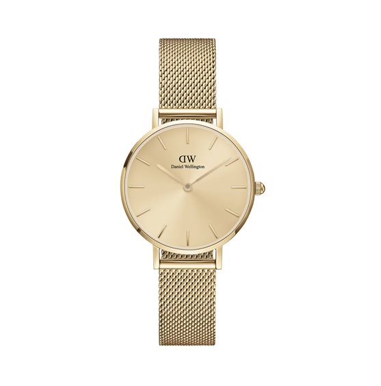 Orologio solo tempo da donna di Daniel Wellington della collezione petite. Orologio petite unitone realizzato in acciaio inossidabile con cinturino e quadrante di color oro. Dimensione cassa: 32mm. Movimento: quarzo. La resistenza all'acqua è di 3 atm. La chiusura è a deployante.