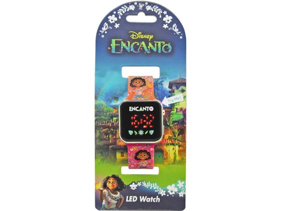 Novità!!! orologio a led Disney Encanto. Orologio con display con sette segmenti che si attiva premendo il pulsante laterale comunicando: ora, data e secondi, cassa in alluminio, cinturino in silicone colorato anallergico.