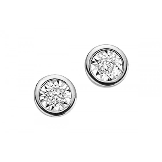 Orecchini donna in oro bianco, castone in oro bianco con diamante.