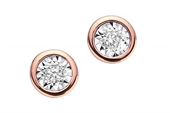 Orecchini in oro rosa, castone in oro rosa con diamante.