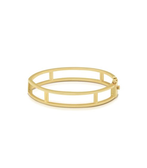 Bracciale rigido componibile in argento dorato. Il bracciale è interamente personalizzabile tramite l'inserimento di lettere e simboli acquistabili separatamente. Esempio di costruzione nella seconda foto.