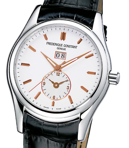 Orologio uomo GMT gran data movimento automatico con vetro zaffiro. Cinturino in pelle di coccodrillo marrone. Seconda ora posizionata a ore 6. Indici lancette rosé.