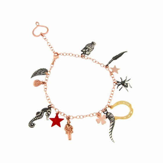 BRACCIALE FORTUNE ROSA Bracciale di catena con soggetti tridimensionali pendenti - misura regolabile Argento 925 placcato oro ad alto spessore, alta resistenza dimensione fino a 23 cm