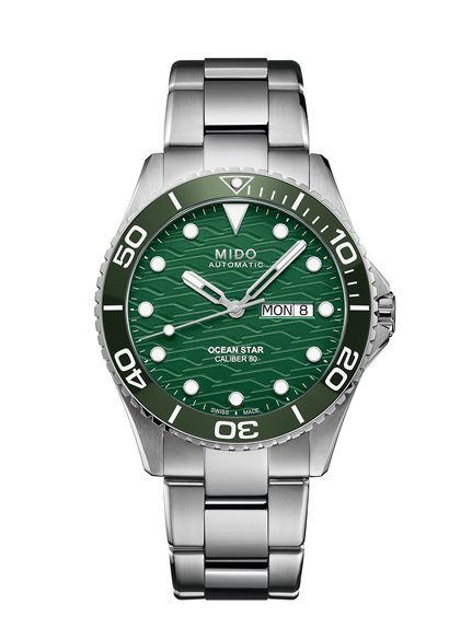 MIDO OCEAN STAR 200C VERDE M0424301109100 - MOVIMENTO: automatico Swiss Made Mido Calibro 80 (base ETA C07.621) - RISERVA DI CARICA: 80 ore - CASSA: in acciaio - Ghiera in ceramica - QUADRANTE: verde - indici e lancette in Super Luminova - CORONA: a vite - DIAMETRO: 42,5mm - BRACCIALE: in acciaio - Chiusura deployante con estensione per sub - VETRO: zaffiro con trattamento antiriflesso su entrambi i lati - FUNZIONI: Divers 3 sfere con datario - IMPERMEABILITA: 200m/20Atm - GARANZIA UFFICIALE 24 mesi