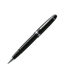 La Meisterstück LeGrand in pregiata resina nera con eleganti dettagli finitura platino, sormontati dall'emblema Montblanc a forma di stella bianca, diventa un'inimitabile icona del design. Tipo Roller Bariletto e cappuccio in pregiata resina nera Clip finitura platino con numero di serie individuale Tipo: Roller Bariletto: in pregiata resina nera Cappuccio in pregiata resina nera con emblema Montblanc intarsiato Clip finitura platino con numero di serie individuale