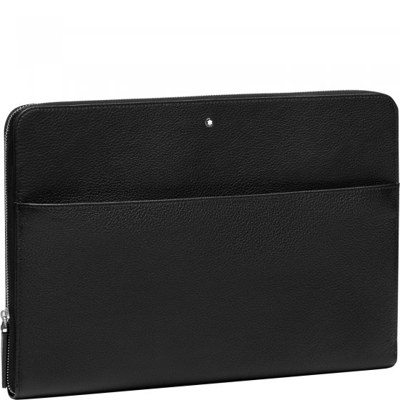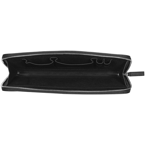 Portadocumenti in pelle nera granulata. Spazio interno per portatile sottile o tablet. Tasca anteriore con cerniera. Interno due passanti per strumenti di scrittura, due tasche per cellulari.