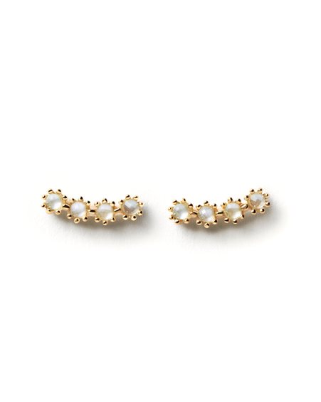 Orecchini a lobo collezione motion, in argento 925‰ con finitura in oro giallo 18Kt caratterizzati da una linea di 4 pietre madreperla e cristalli blu con un diametro di 2 mm e chiusura a perno.