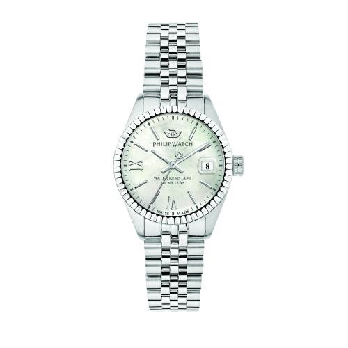 Collezione Caribe: movimento al quarzo Swiss Made Ronda 505, cassa in acciaio inox mm.31, impermeabilità 10 atm., vetro zaffiro, quadrante in madreperla, bracciale in acciaio con fibbia déployante.