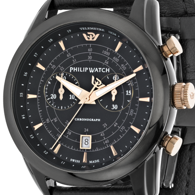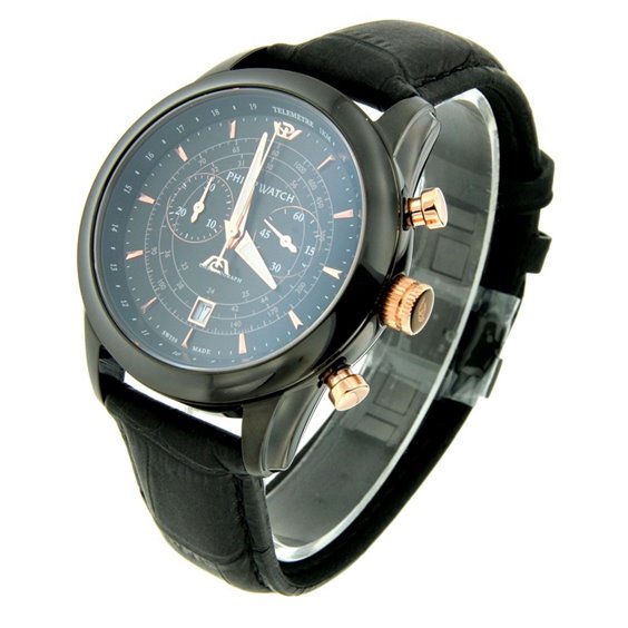 Cassa in PVD Movimento al quarzo Vetro zaffiro Fondello e corona a vite Finiture in oro rosa