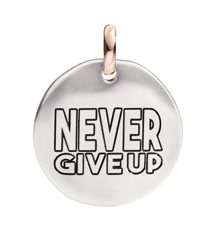 MONETA QUERIOT IN ARGENTO E ORO ROSA 9K CON SCCRITTA 'NEVER GIVE UP'