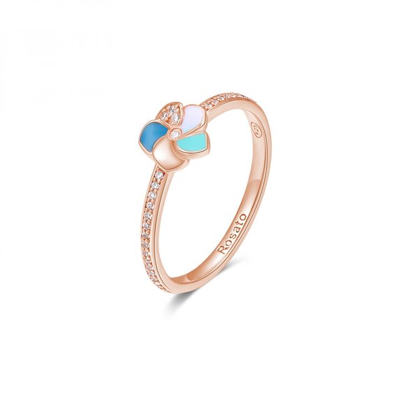 Anello in Argento 925‰, placcatura oro rosa, smalti colorati, 63 cubic zirconia bianchi incassati.