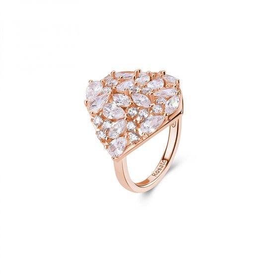 Anello in argento 925‰, placcatura oro rosa, 33 cubic zirconia bianchi