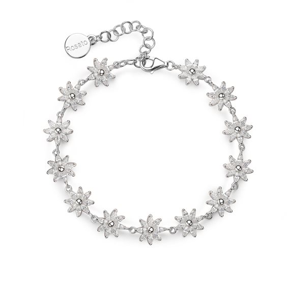 Bracciale morbido con fiori in argento 925‰, 104 cubic zirconia bianchi