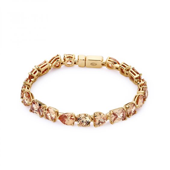 Bracciale snodato in argento 925‰, placcatura oro giallo, 19 cubic zirconia champagne di varia forma e taglio
