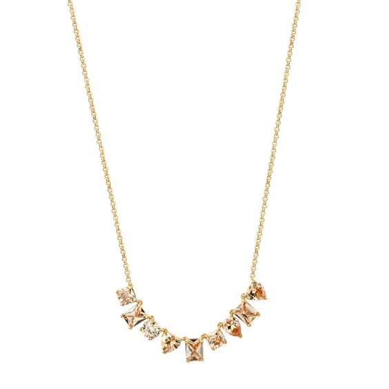 Collana corta in argento 925‰, placcatura oro giallo, 9 cubic zirconia champagne