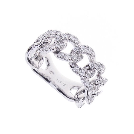 Anello in oro bianco 18 kt. , maglia Groumette della collezione Classic Tradition con diamanti taglio brillante di kt. 1.20 , VS G COLOR. Un gioiello che esprime un connubio fra modernità e finezza. garanzia internazionale 2 anni e assicurazione gratuita , fornita dal Produttore, di 2 anni - su scippo o rapina.