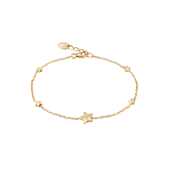 bracciale in oro giallo 9 carati con serie di stelle. nella centrale piccolo diamantino. misura 18 cm regolabile