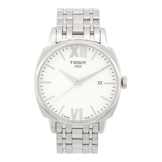 Bell'orologio Tissot Lord in acciaio lucido e spazzolato, con cassa sagomata di 40 mm., quadrante bianco con indici, XII e VI in acciaio, secondi al centro, datario, vetro zaffiro, movimento automatico swiss made visibile dal fondello in vetro zaffiro, impermeabile a 50 mt. Bracciale in metallo con chiusura a scomparsa a tre lame. Garanzia due anni.