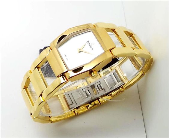 Cassa in acciaio 24x30 mm con trattamento PVD oro giallo, bracciale in acciaio, movimento al quarzo, vetro zaffiro, impermeabilità 30m